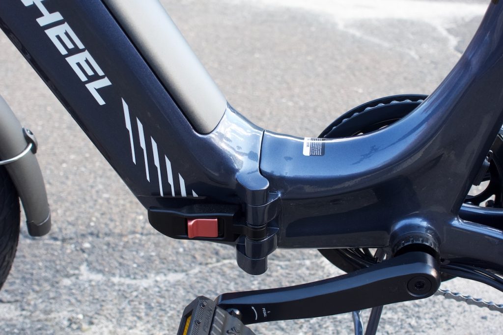 However, I’m very disappointed with the folding mechanism of this bike. This is probably the worst among all bikes I’ve ever used. While the folding mechanism itself is straightforward, actually handling the bike is a different story. I fold down the handlebar first, then open the latch to fold the bike in half; In the meantime, I need to turn the front wheel so that the handlebar doesn’t sit between the 2 wheels. I also have to deal with the pedals which are always there to block the way. In the end, we have a bulky folded bike that sometimes can’t stand on its own. The stand on the bottom doesn’t work properly in this case and the bike stands on the pedals most of the time.